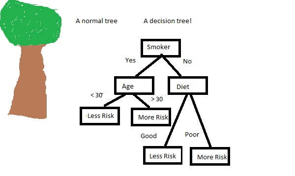 건강 위험도를 결정하는 의사 결정 트리로 예를 들어 보겠습니다.