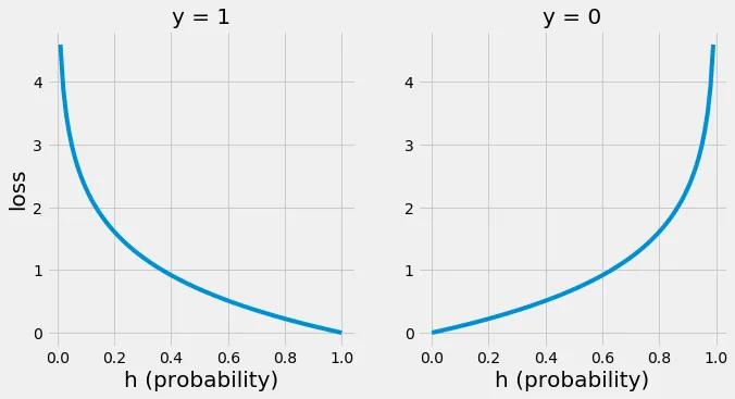 - 실제 값(y)이 1 일 때, 손실은 -log(H(x)) 로 계산된다.
