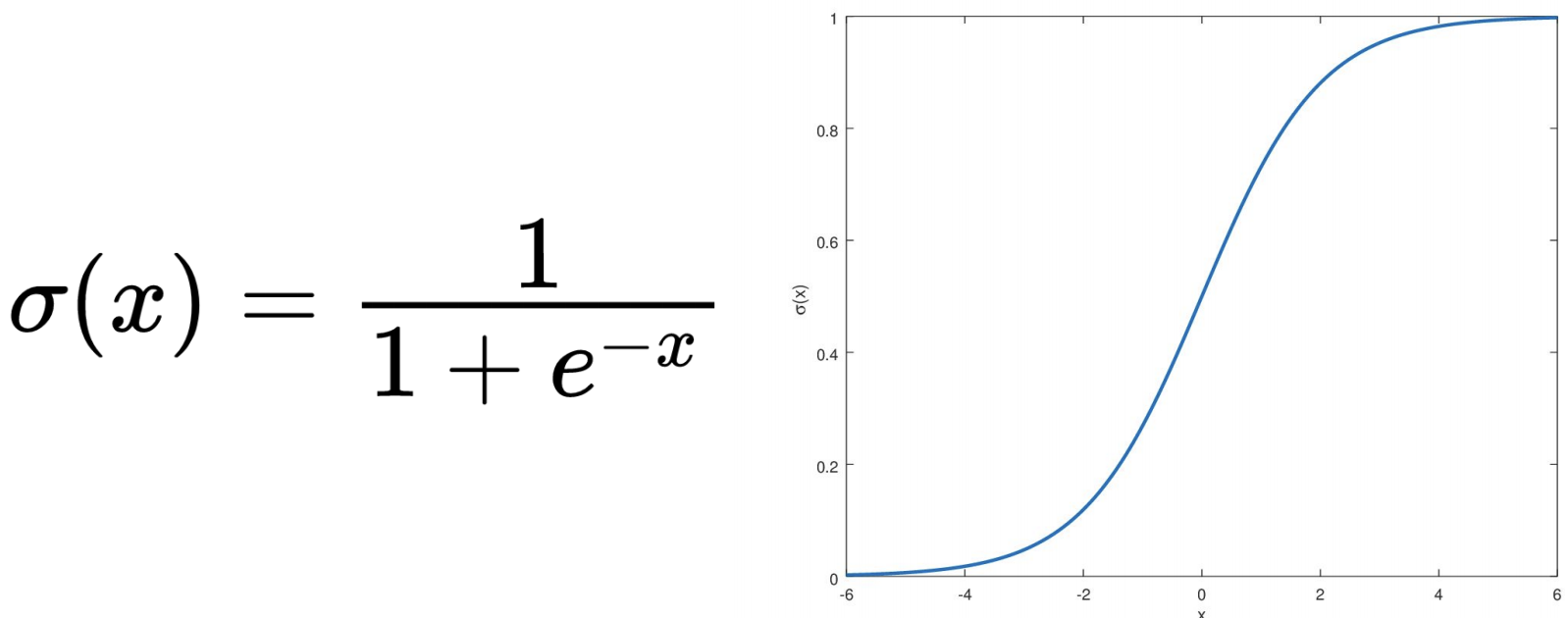 - x의 값이 클 때의 예측값은 1/(1+0) 으로 1 에 수렴할 것이다.