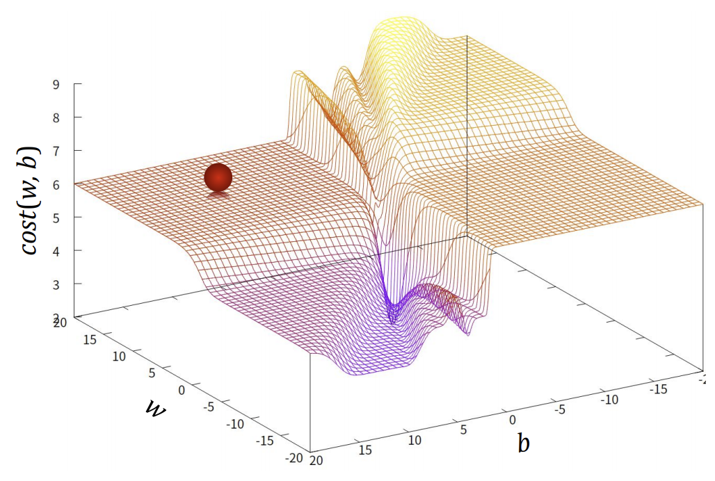 위 그림처럼, 평야가 많아지기 때문에, 아무리 학습을 많이해도, mse 를 사용해 구한 cost 함수에서는 gradient descent 알고리즘이 제대로 동작하지 않게 된다.
