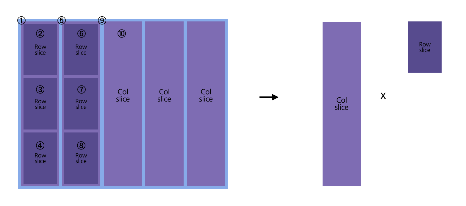 - 각 col slice에서 LCxLC 크기의 row slice 생성