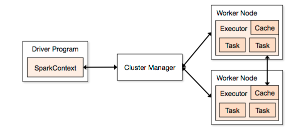 - 이들은 Driver Program의 Spark Context를 통해 조정됩니다.