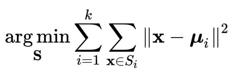 - μi : i 번째 클러스터의 중심 (데이터 평균)