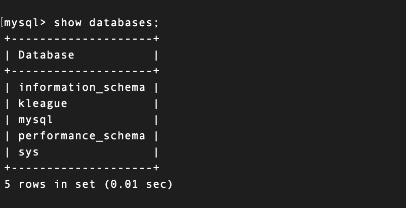 docker exec -it mysql-container bash mysql -u root -p show databases;
