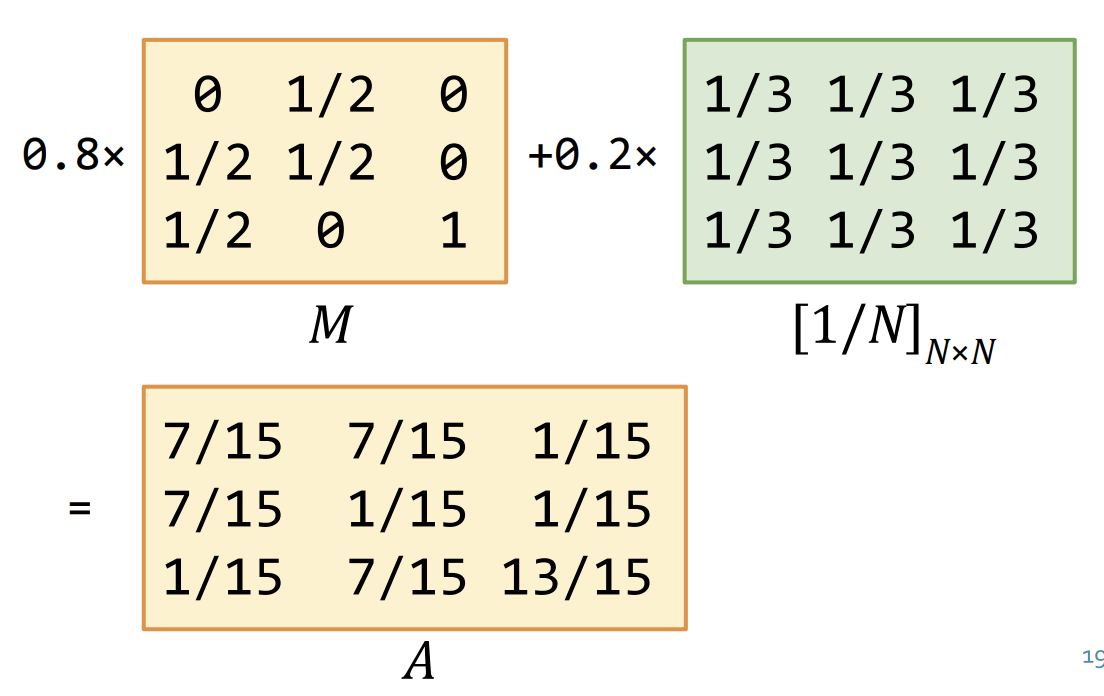 해당 방법을 사용하면, PageRank Score 오리지널 버전에서도, r = A * r 을 통해 Power Iteration 을 사용할 수 있게 된다.