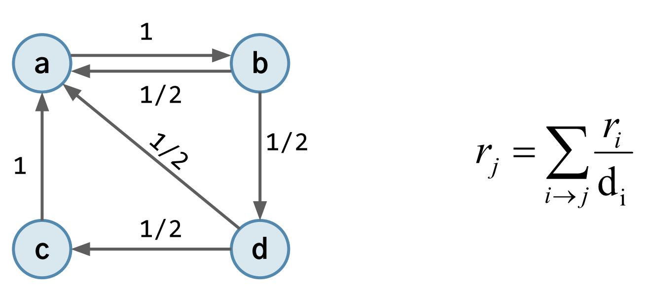 - 1) 각각의 노드(a, b, c, d)는 점수(ra, rb, rc, rd)를 가지고 있다.