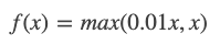 - x가 음수일 때 미분값이 0이 되는 RELU Function 대신, 약간의 기울기를 갖는 함수이다.