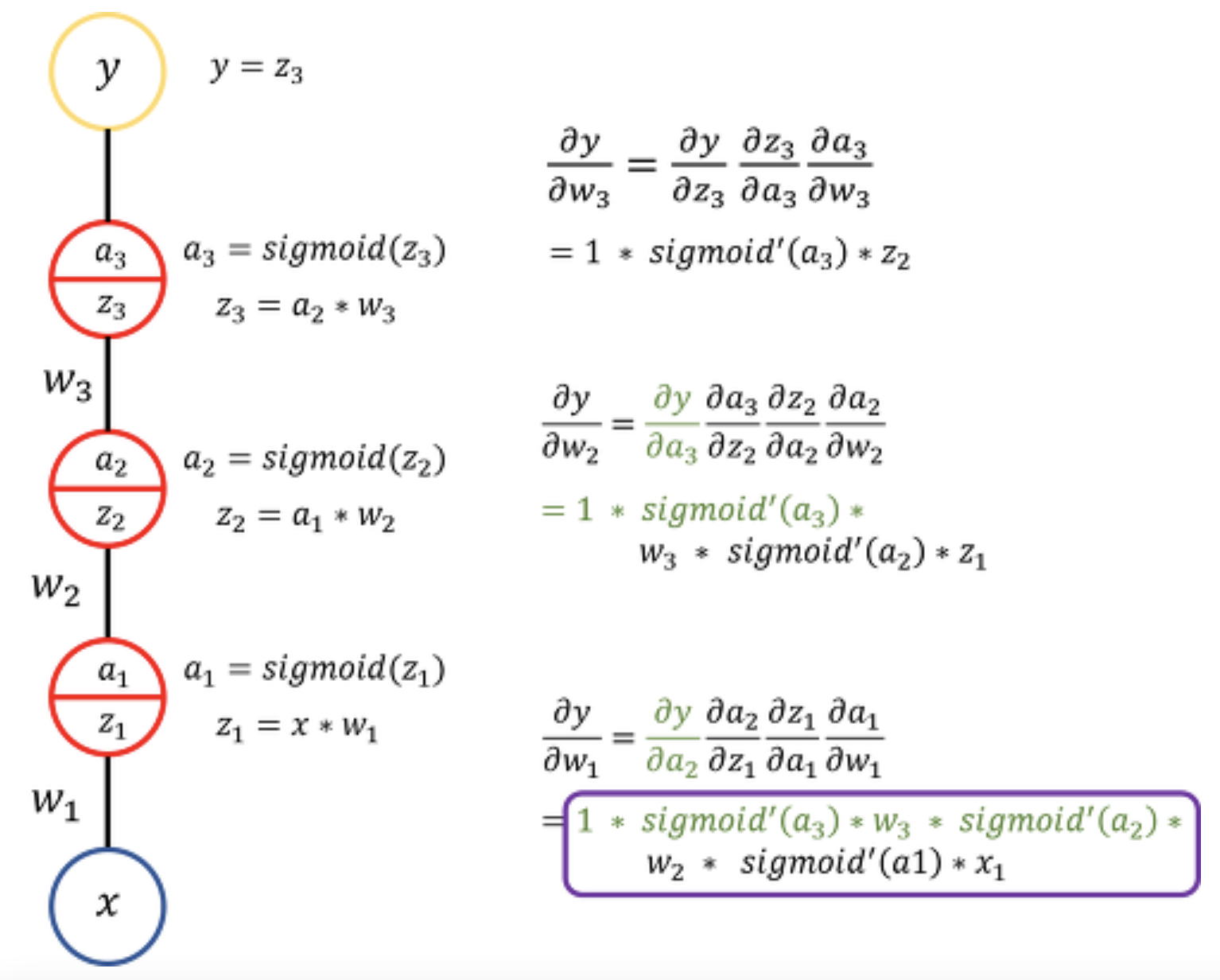 - W_1의 Gradient를 확인해보면 Backpropagation(역전파)로 인해, Sigmoid의 도함수가 중첩된 것을 볼 수 있다.