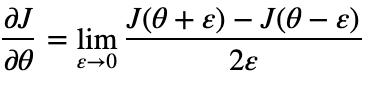 e(엡실론) 이 매우 작다 가정하고, θ-e 와 θ+e 두 점 사이의 기울기를 구한다.