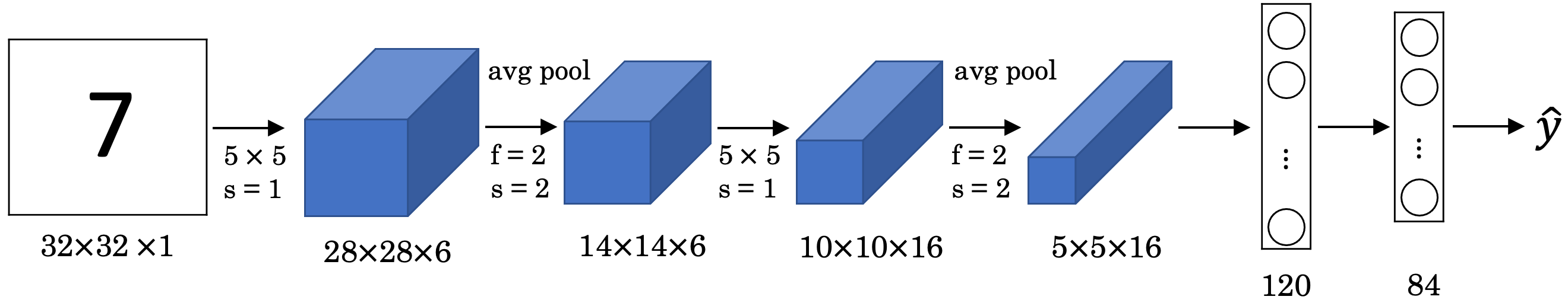 - LeNet-5은 손글씨 숫자를 인식하는 네트워크입니다.