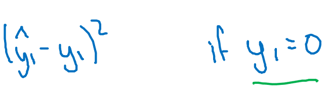 하지만, 객체가 존재하지 않는다면, 즉 y1 = 0 이라면 y1 값만 필요하므로 오직 y1 원소에 한하여 Squared Error를 구하면 됩니다.