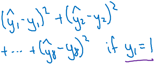 객체가 존재한다면, 즉 y1 = 1 이라면 y1 ~ y8까지 모든 원소에 대한 Squared Error를 구합니다.
