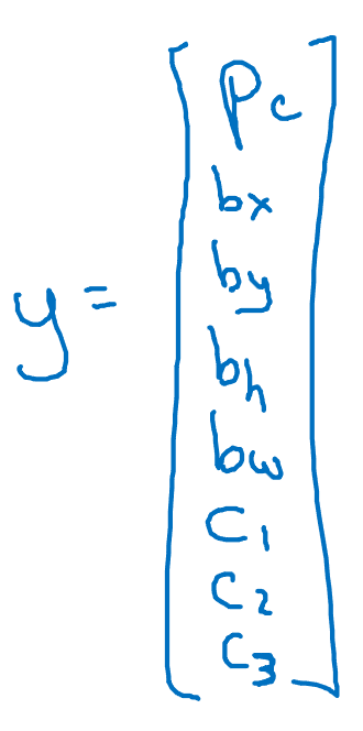 [Pc, bx, by, bh, bw, c1, c2, c3] 는 [ y1, y2, y3, y4, y5, y6, y7, y8 ] 로 표현되며