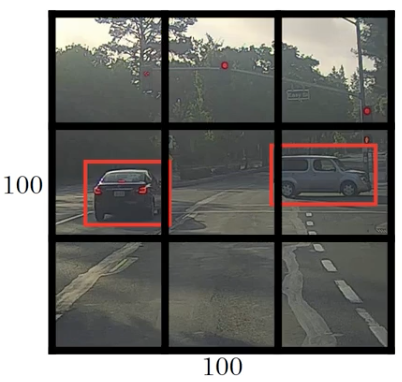위 그림을 보시면, 보행자의 중심점과 차량의 중심점이 거의 같은 위치에 있으며, 둘 다 동일한 그리드 셀에 속해 있는 것을 볼 수 있습니다.