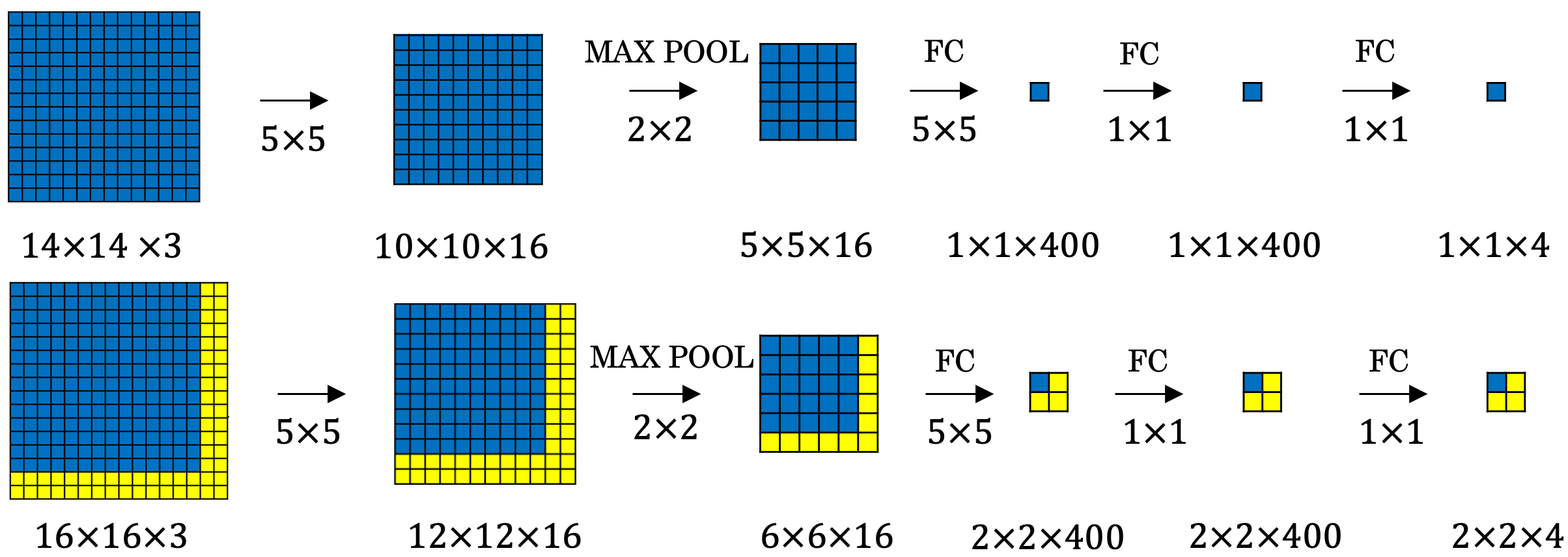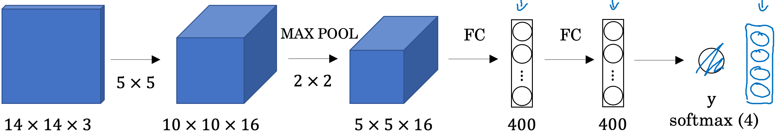 아래 그림은, Convolutional Implementation of Sliding Windows에서 사용되는 ConvNet의 구조입니다.