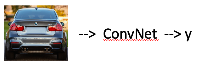 - ConvNet은 y를 출력하며, y는 자동차인지 아닌지를 0 또는 1로 나타냅니다.