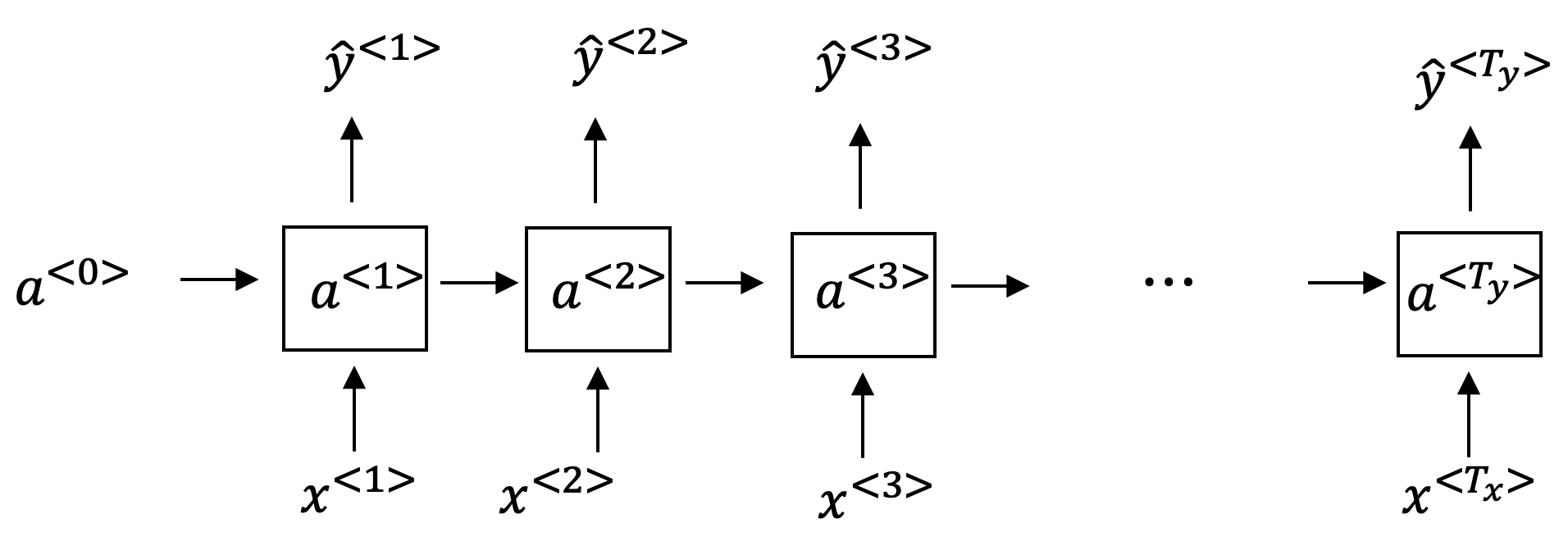 이 때, y^<2> 예측 시 x<2>만 사용하는 것이 아니라, 첫번째 단어로 연산한 정보의 일부를 사용하게 된다.