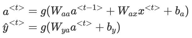 다음으로 a<1>을 구하기 위해선 [ Waa<0> + Wax<1> + ba ] 에 activation function을 적용해 구한다.