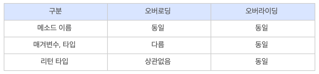 - 오버로딩(Overloading)과 오버라이딩(Overriding)의 개념은 다르지만, 이름이 비슷해 참 헷갈린다.