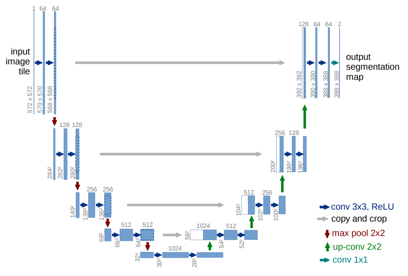 네트워크 형태가 알파벳 U와 비슷하다고 하여 붙여진 이름으로, 의생명공학 이미지 Segmentation을 위해 개발된 모델입니다.