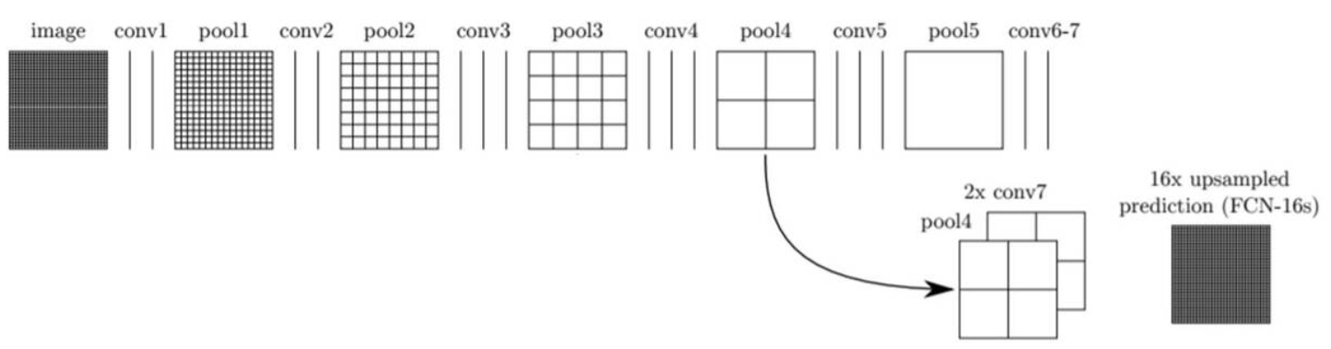 그 다음 (pool4 + 2x conv7)을 16배 upsampling 해 얻은 특성맵들로 segmentation map을 얻는 방법을 FCN-16s라고 부릅니다.