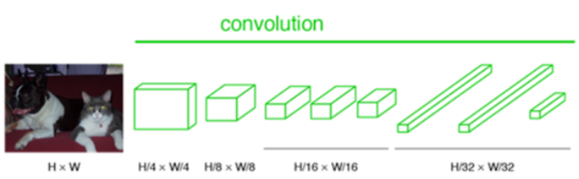- 여러 층의 convolution층들을 거치고 나면, 특성맵(feature map)의 크기가 H/32 x W/32가 되는데, 그 특성맵의 한 픽셀이 입력이미지의 32 x 32 크기를 대표하게 됩니다.
