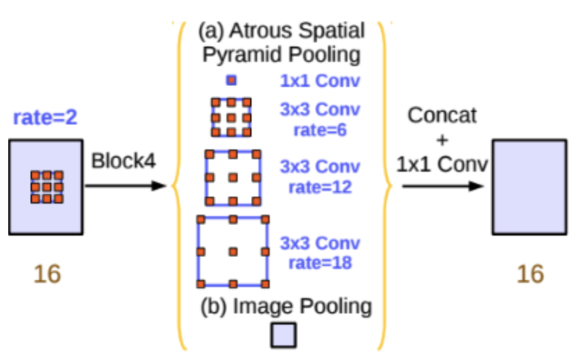 - DeepLab 에서는 ASPP를 기본 모듈로 사용하고 있습니다.