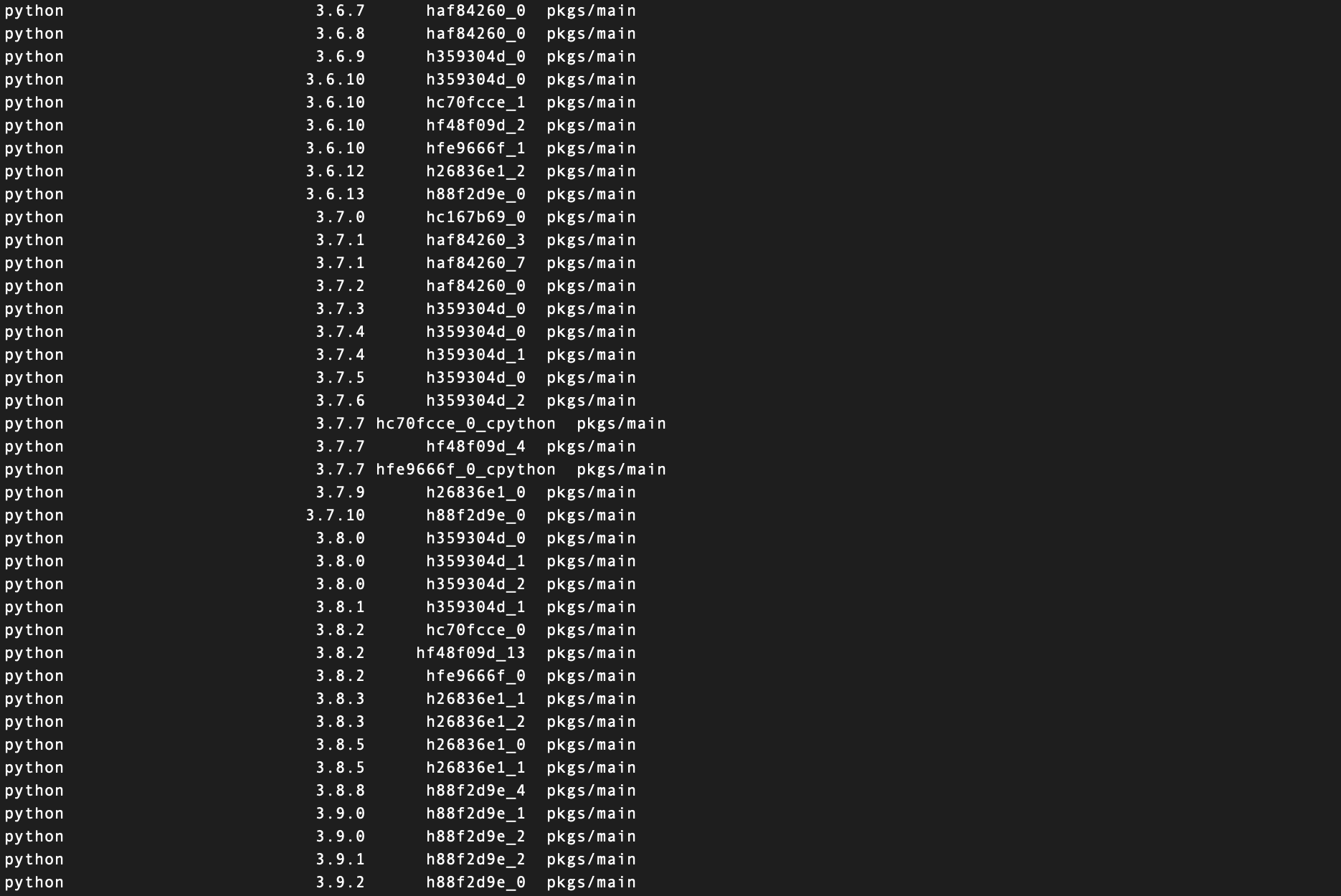 conda search python