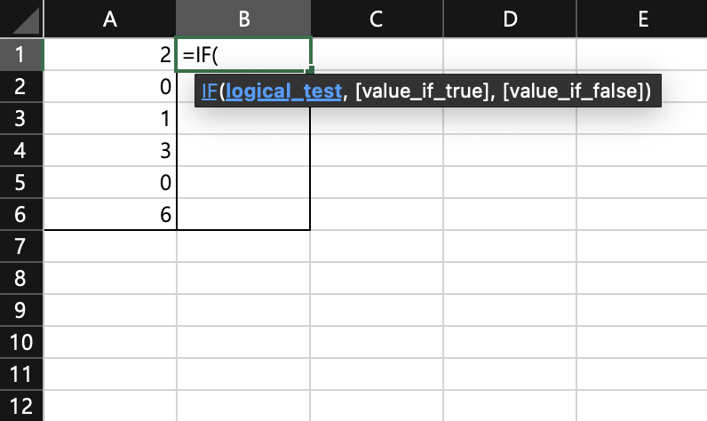 우선, B1 셀을 클릭한 뒤, IF 함수를 작성합니다.