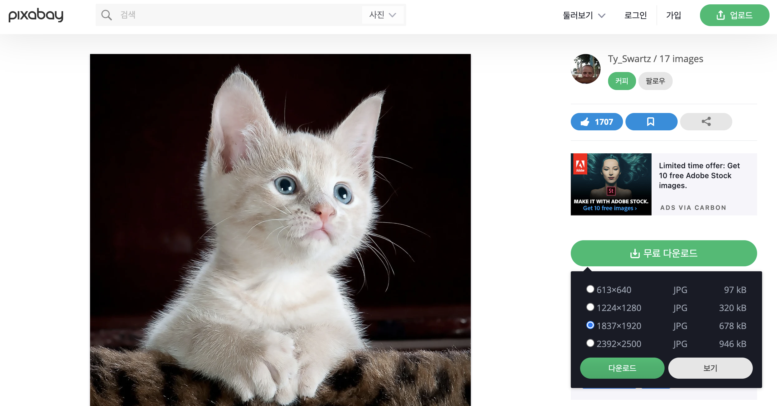 아래 링크를 통해, 강아지 및 고양이 이미지를 다운로드 합니다. [무료]