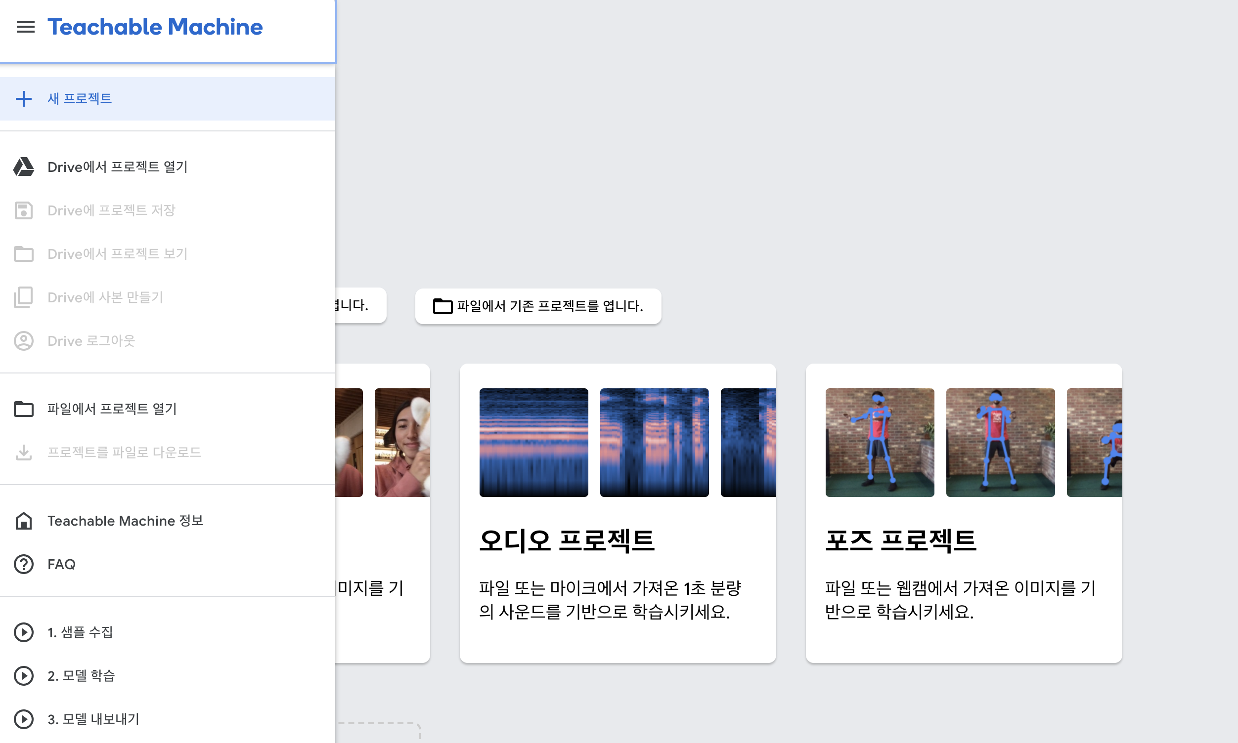 - 사용자들은 티처블 머신을 사용해 이미지, 사운드, 포즈를 학습할 수 있으며,