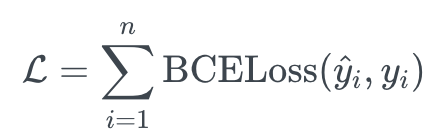 따라서, 다중 항목에 대한 Binary Cross Entropy Loss 는 아래 공식으로 계산할 수 있습니다.