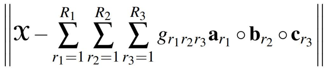 - CP Decomposition 과 Tucker Decomposition 의 목적 함수는 아래와 같다.
