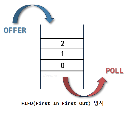 - 따라서, 큐 (Queue) 자료구조는, 먼저 들어온게 먼저 나가는 선입선출(FIFO, First In FirstOut) 방식의 자료구조이다.