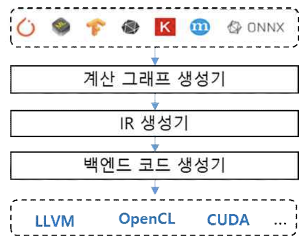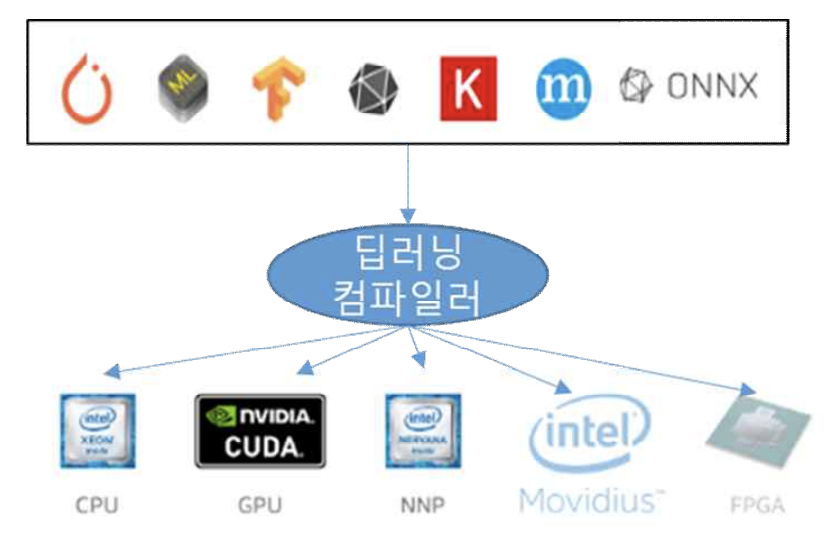 - 딥러닝 컴파일러는, 다양한 딥러닝 플랫폼에서 학습된 딥러닝 모델을 입력으로 받아,