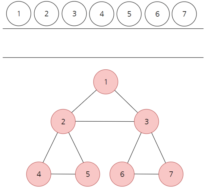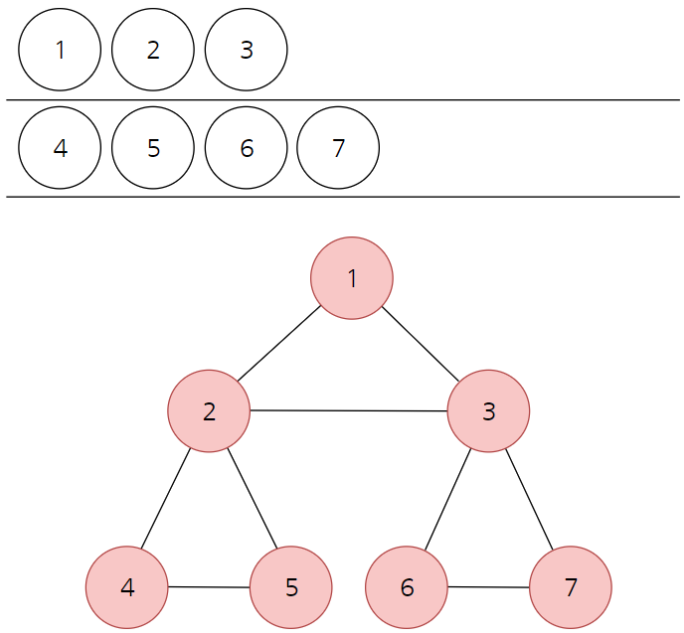 큐에서 꺼내진 노드 순서는 1, 2, 3, 4, 5, 6, 7 입니다.