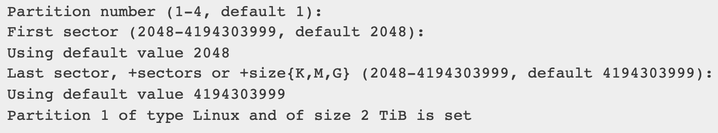 이어서, Partition number, First sector, Last sector 설정에 대한 질문이 나옵니다.