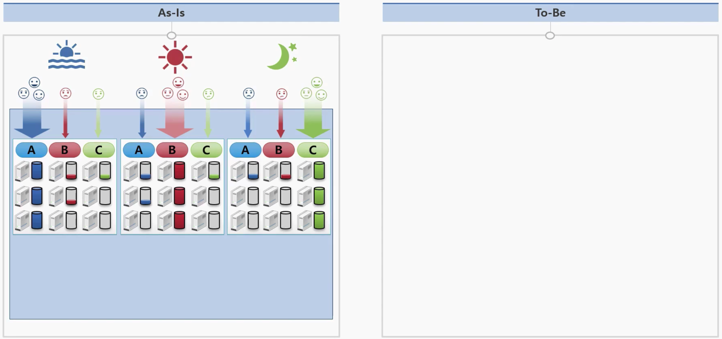 - 즉, 각각의 서비스는 시간대별로 트래픽의 양이 다르기 때문에, 해당 회사는 총 9대의 서버를 상시 구동시키고 있습니다.