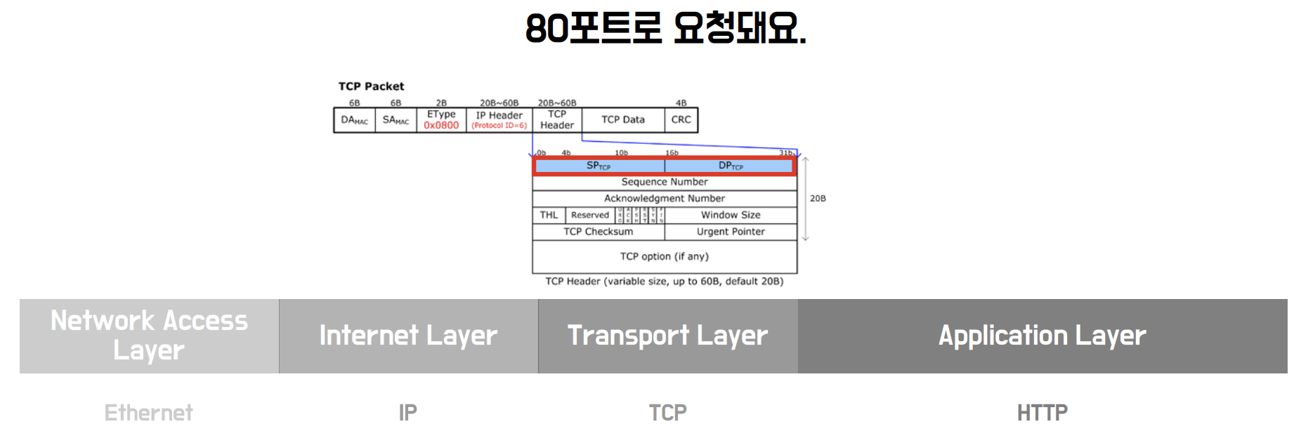 따라서, Transport Layer는 80번 포트를 사용하고 있는 Application Layer에 데이터를 전송합니다.