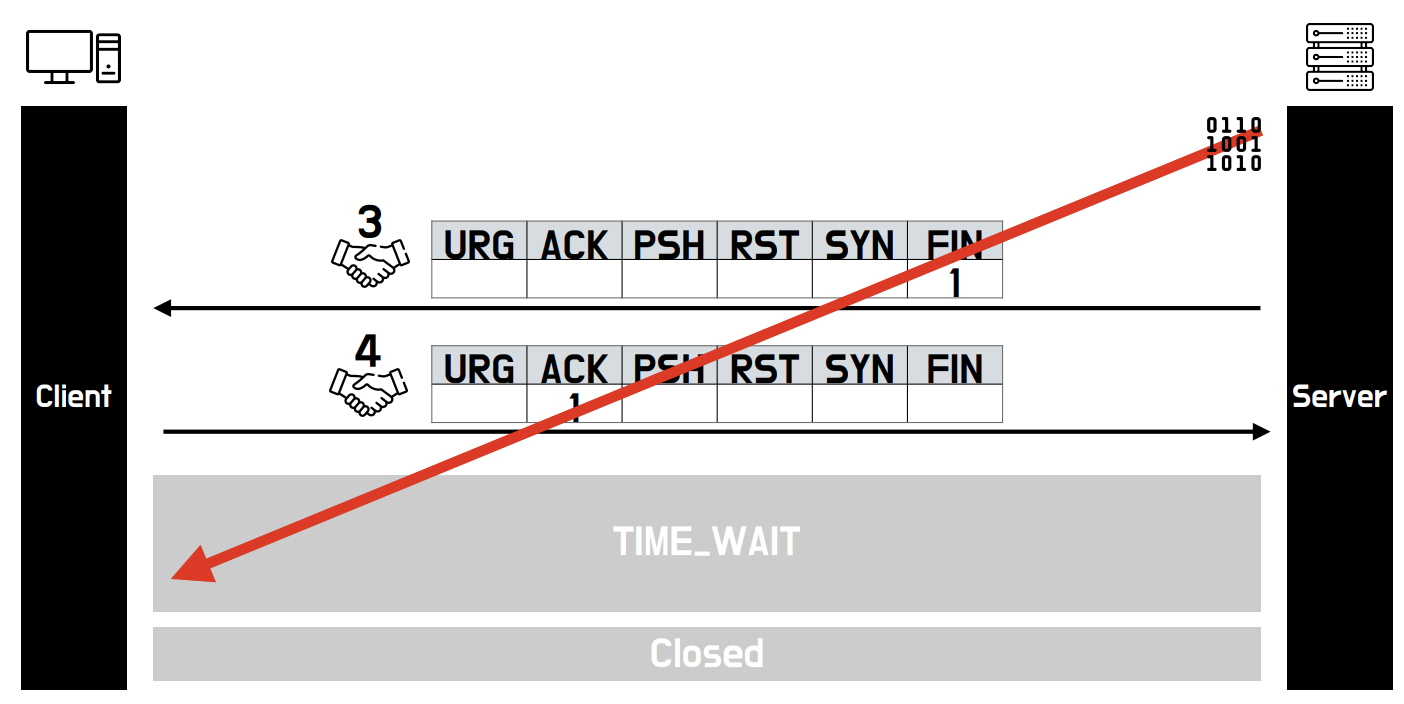 따라서, 클라이언트는 서버로부터 FIN 패킷을 받고, ACK 패킷을 보낸 뒤에도