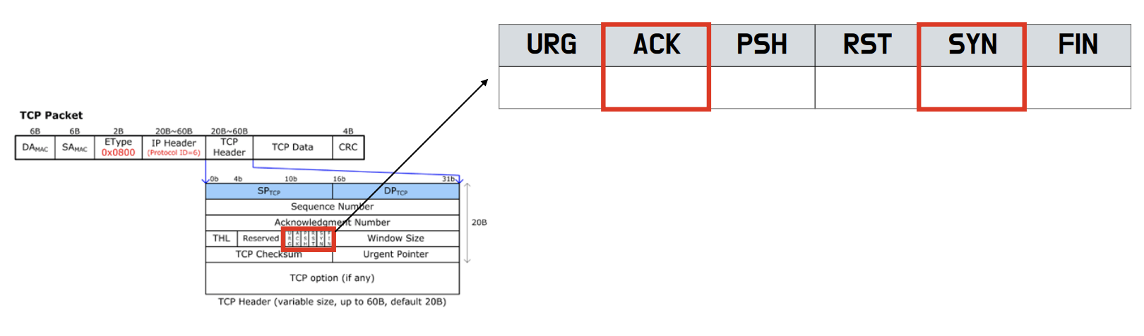 3 Way Handshaking 을 수행하기 위해서는, TCP 헤더에 표시한 플래그들이 사용되며, 이러한 플래그들을 컨트롤 비트라고 부릅니다.