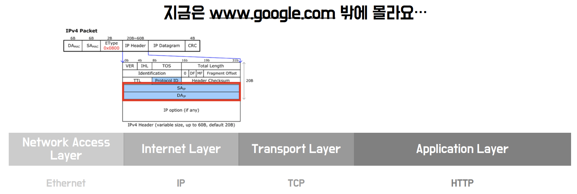- 나의 시작 IP 주소는 알고 있지만, 목적지의 IP 주소는 아직 모릅니다.