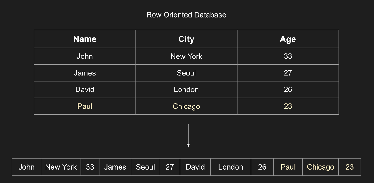 행 기반 데이터베이스에서 Insert, Update, Delete를 진행할 경우, row(record) 단위로 묶어서 처리할 수 있으므로 효율적입니다.