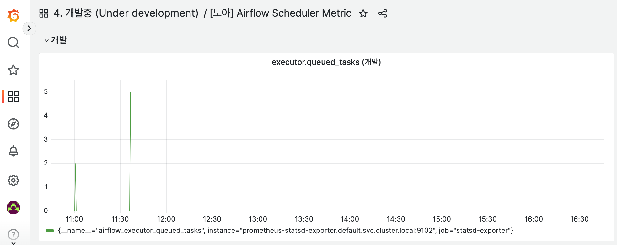 - 해당 예제에선 “http://scheduler-statsd-exporter.default.svc.cluster.local:9102/metrics” 경로를 통해 확인할 수 있습니다.