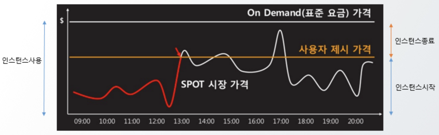 - 사용자가 제시한 가격보다 인스턴스 시장 가격이 높아지게 되면 인스턴스가 종료됩니다.