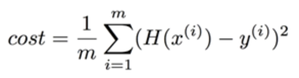 - 각각의 예측 값 H(x')와 실제 데이터 값 Y의 차이를 제곱한 뒤